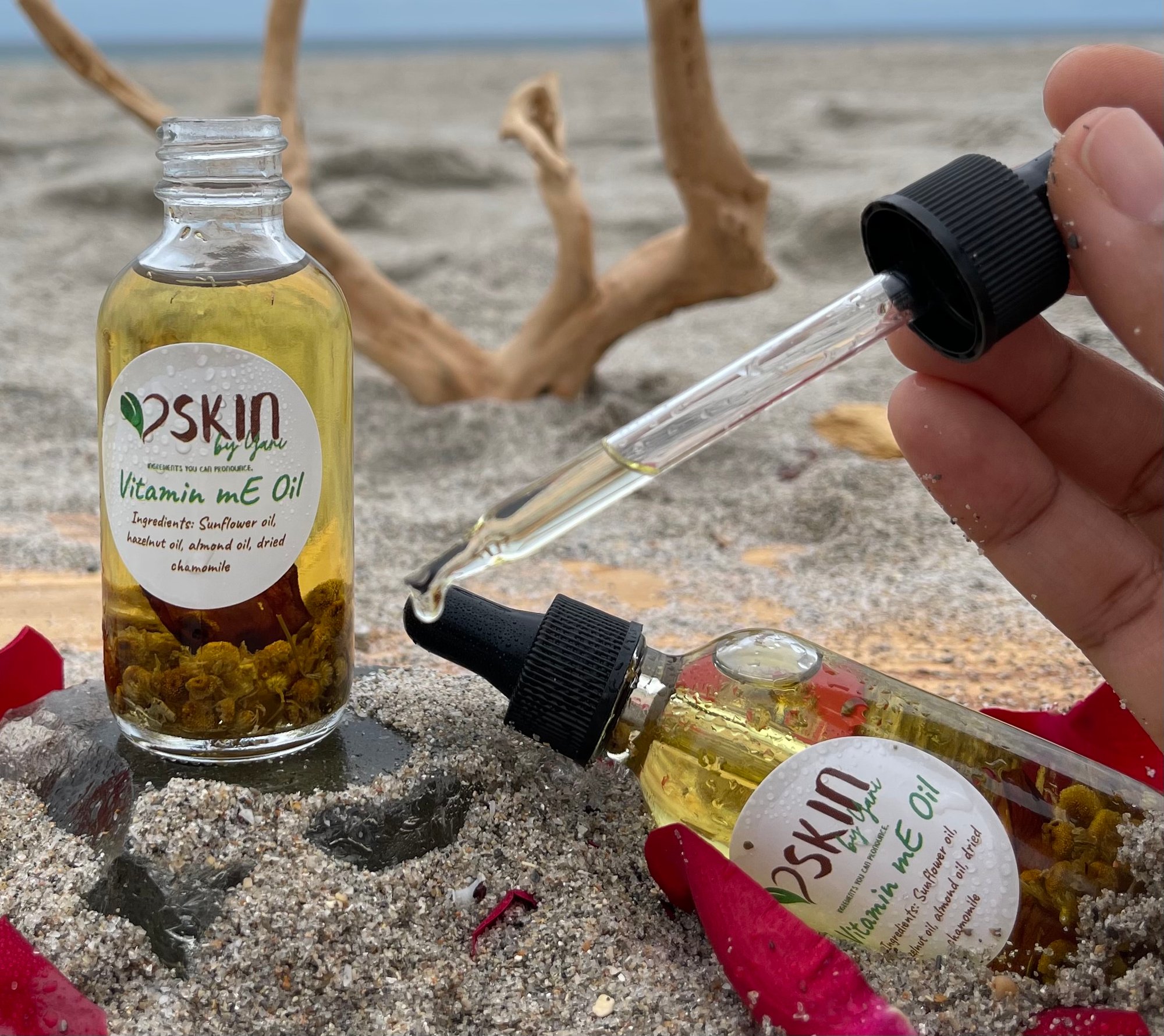 Vitamin mE is my rendition of vitamin E oil. It includes my special collection of vitamins with many protecting and healing effects. Known for its antioxidant content, Vitamin mE is your skin’s protector from free radicals (unstable molecules found in the atmosphere that damage the skin). This collection of oils only features noncomedogenic oils that won’t clog your pores. That makes it perfect for ALL skin types including sensitive and oily!